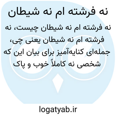 جمله‌ای کنایه‌آمیز برای بیان این که شخصی نه کاملاً خوب و پاک (مثل فرشته) است و نه کاملاً بد و شرور (مثل شیطان). این عبارت برای نشان دادن ماهیت انسانی با ویژگی‌های مثبت و منفی به کار می‌رود.