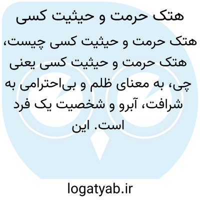 به معنای ظلم و بی‌احترامی به شرافت، آبرو و شخصیت یک فرد است. این عبارت گاهی به معنای انجام رفتاری است که موجب تحقیر، آزار روانی، یا تخریب اعتبار فرد در جامعه شود. هتک حرمت می‌تواند در قالب کلام، رفتار یا اقدامات ناپسند باشد که حیثیت و احترام فرد را خدشه‌دار می‌کند.