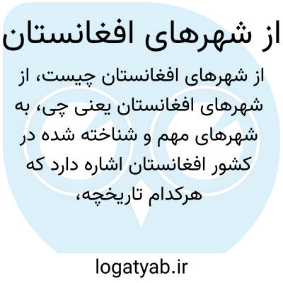 به شهرهای مهم و شناخته شده در کشور افغانستان اشاره دارد که هرکدام تاریخچه، فرهنگ و ویژگی‌های جغرافیایی خاص خود را دارند. مانند کابل، قندهار، هرات، مزار شریف و بلخ از معروف‌ترین این شهرها هستند.