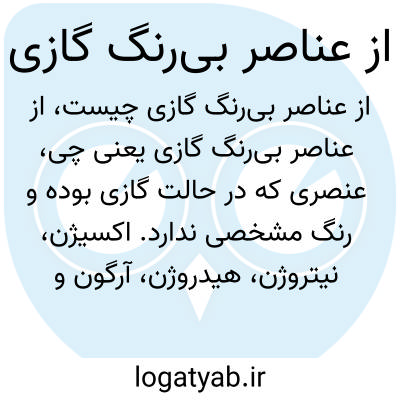 عنصری که در حالت گازی بوده و رنگ مشخصی ندارد. اکسیژن، نیتروژن، هیدروژن، آرگون و نئون از این نوع عناصر هستند که در ترکیبات مختلف شیمیایی و جو زمین نقش مهمی ایفا میکنند.