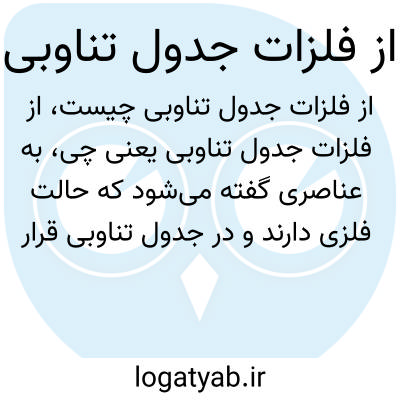 به عناصری گفته می‌شود که حالت فلزی دارند و در جدول تناوبی قرار گرفته‌اند. مانند آهن، مس، آلومینیوم، طلا و نقره که خواص هدایت گرمایی و الکتریکی دارند و در صنایع مختلف کاربرد فراوانی دارند.