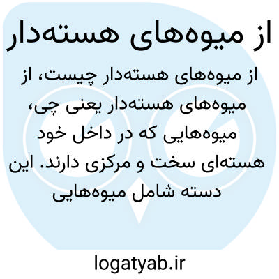 میوههایی که در داخل خود هستهای سخت و مرکزی دارند. این دسته شامل میوههایی همچون هلو، آلو، زردآلو و گیلاس است که از نظر خوراکی و کشاورزی اهمیت زیادی دارند.
