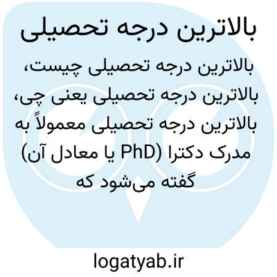 بالاترین درجه تحصیلی معمولاً به مدرک دکترا (PhD یا معادل آن) گفته می‌شود که نشان‌دهنده تخصص و دانش عمیق در یک رشته علمی یا تخصصی است و پس از آن مدارجی مانند فوق دکترا نیز وجود دارد ولی به عنوان رسمی‌ترین و کامل‌ترین مدرک دانشگاهی شناخته می‌شود.