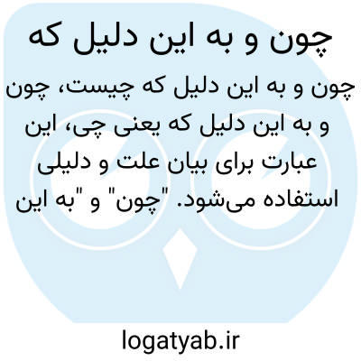 این عبارت برای بیان علت و دلیلی استفاده می‌شود. "چون" و "به این دلیل که" هر دو کلماتی هستند که در جملات علت و معلولی می‌آیند تا توضیح دهند چرا یک اتفاق افتاده یا یک گزاره درست است. مثلا: "او نیامد چون بیمار بود" و "او نیامد به این دلیل که بیمار بود".