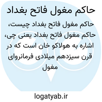 اشاره به هولاکو خان است که در قرن سیزدهم میلادی فرمانروای مغول بود و بغداد را در سال 1258 میلادی فتح کرد. این فتح به عنوان یکی از وقایع مهم و تلخ تاریخ اسلامی شناخته می‌شود که منجر به نابودی خلافت عباسی شد.