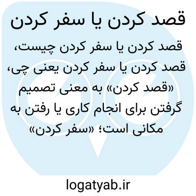 «قصد کردن» به معنی تصمیم گرفتن برای انجام کاری یا رفتن به مکانی است؛ «سفر کردن» یعنی رفتن از مکانی به مکان دیگر، معمولاً برای تفریح، کار یا زیارت. هر دو فعل نشاندهنده حرکتی از جا به جای دیگر یا آغاز کاری است.