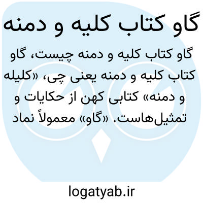 «کلیله و دمنه» کتابی کهن از حکایات و تمثیلهاست. «گاو» معمولاً نماد صبر و بردباری است، اما ترکیب «گاو کتاب کلیله و دمنه» به صورت مشخص معنای خاصی ندارد و شاید ترکیبی نارسا باشد.