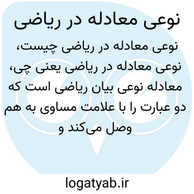 معادله نوعی بیان ریاضی است که دو عبارت را با علامت مساوی به هم وصل میکند و هدف یافتن مقادیری است که آن دو طرف را برابر کنند. انواع مختلف معادله وجود دارد مانند معادله خطی، درجه دو، دیفرانسیل و غیره.