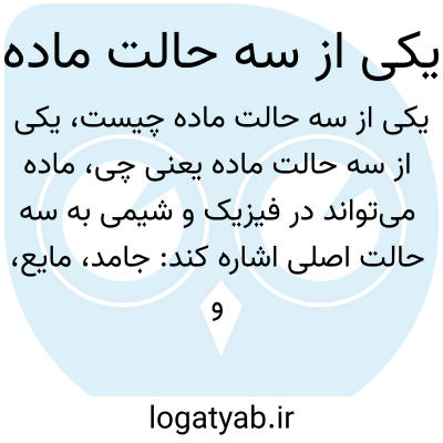 ماده می‌تواند در فیزیک و شیمی به سه حالت اصلی اشاره کند: جامد، مایع، و گاز. هر ماده‌ای می‌تواند در این سه حالت وجود داشته باشد و ویژگی‌های خاص خود را داشته باشد؛ مثلاً جامد شکل ثابت، مایع قابلیت جریان و گاز ظرفیت انبساط دارد.