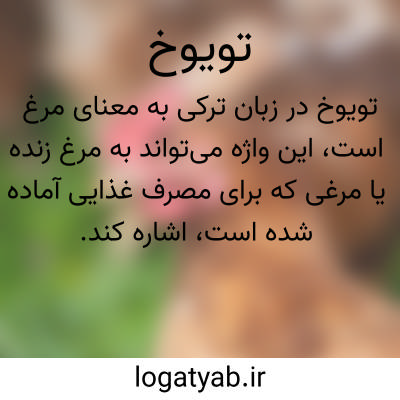 تویوخ در زبان ترکی به معنای مرغ است، این واژه می‌تواند به مرغ زنده یا مرغی که برای مصرف غذایی آماده شده است، اشاره کند.