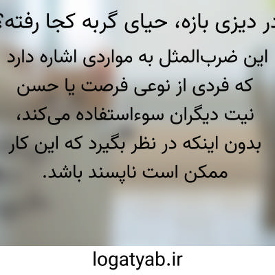 ضرب‌المثل «در دیزی بازه، حیای گربه کجا رفته؟» به مواردی اشاره دارد که فردی از نوعی فرصت یا حسن نیت دیگران سوءاستفاده می‌کند، بدون اینکه در نظر بگیرد که این کار ممکن است ناپسند یا غیرقابل قبول باشد.